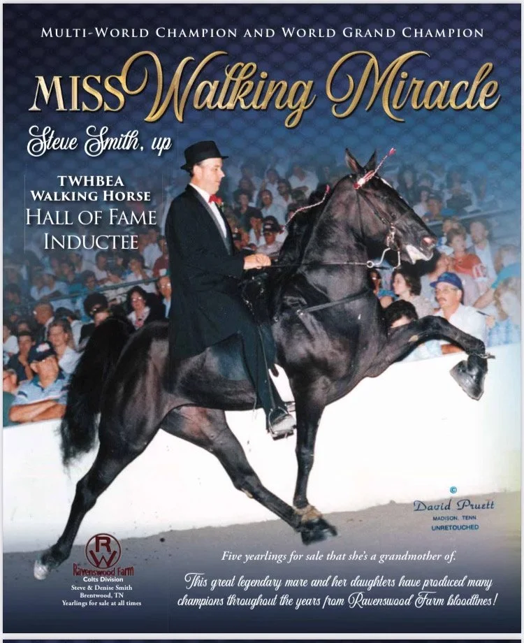 The only mare to win the Walking Horse Futurity as a weanling, yearling, and two year old.